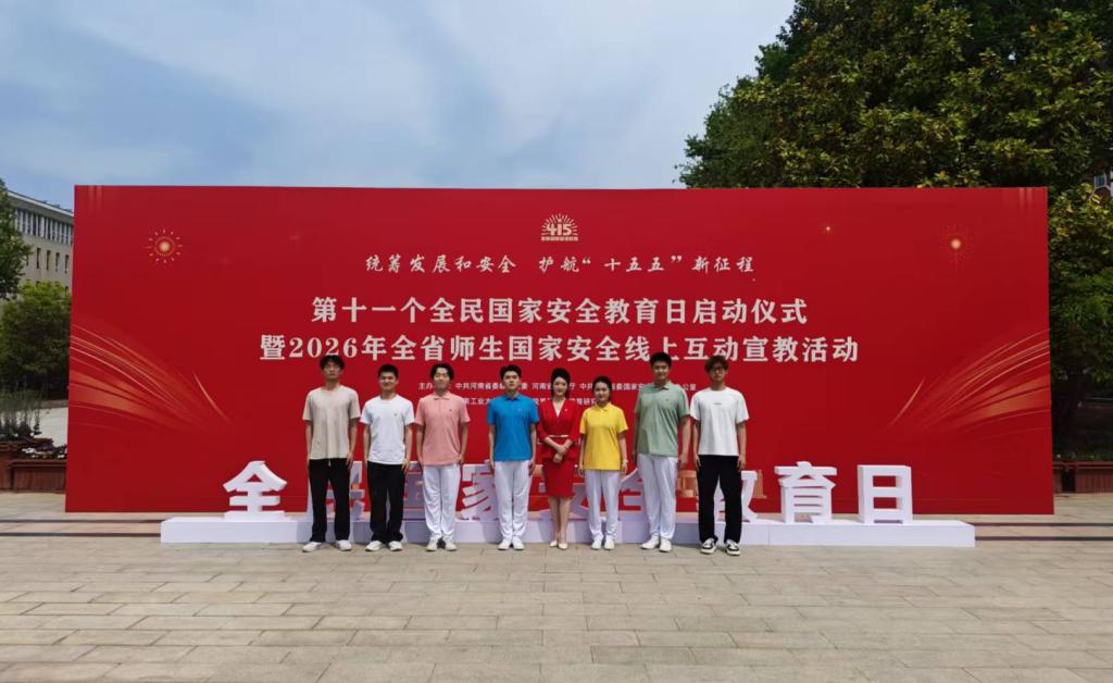 4月15日,第十一个全民国家安全教育日启动仪式暨2026年全省大学生践行总体国家安全观宣讲展演在河南工业大学隆重举行。本次活动由省委教育工委、省委国安办、省教育厅联合主办,并在“豫教思语”平台全程直播。经层层选拔,我校学子受邀精彩亮相省级展演,情景剧《以青春之名 守家国之安》与河南大学、南阳理工学院同台展演,赢得线上线下观众一致好评。